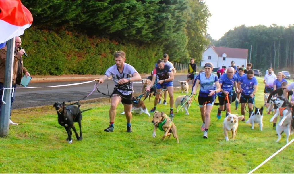 Samedi, à 9 h, dix-neuf couples chien-coureur se sont élancés sur les sentiers environnants pour une course de 5 km. © Ouest-France.