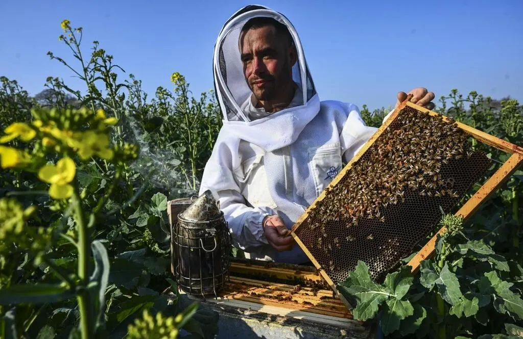 La Chapelle-Saint-Aubin, vendredi 25 mars 2022. Hubert, passionné par les abeilles depuis longtemps, a décidé de devenir apiculteur professionnel. © Photo Le Maine Libre-Denis LAMBERT