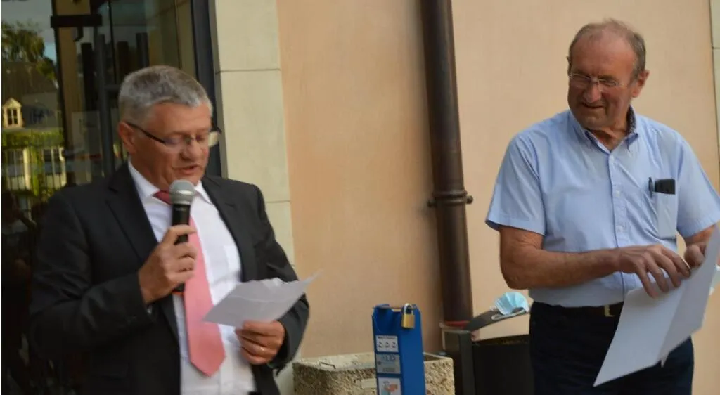 Marc Mercier et le maire Léonard Gaschet pendant la proclamation des résultats. © Le Maine Libre