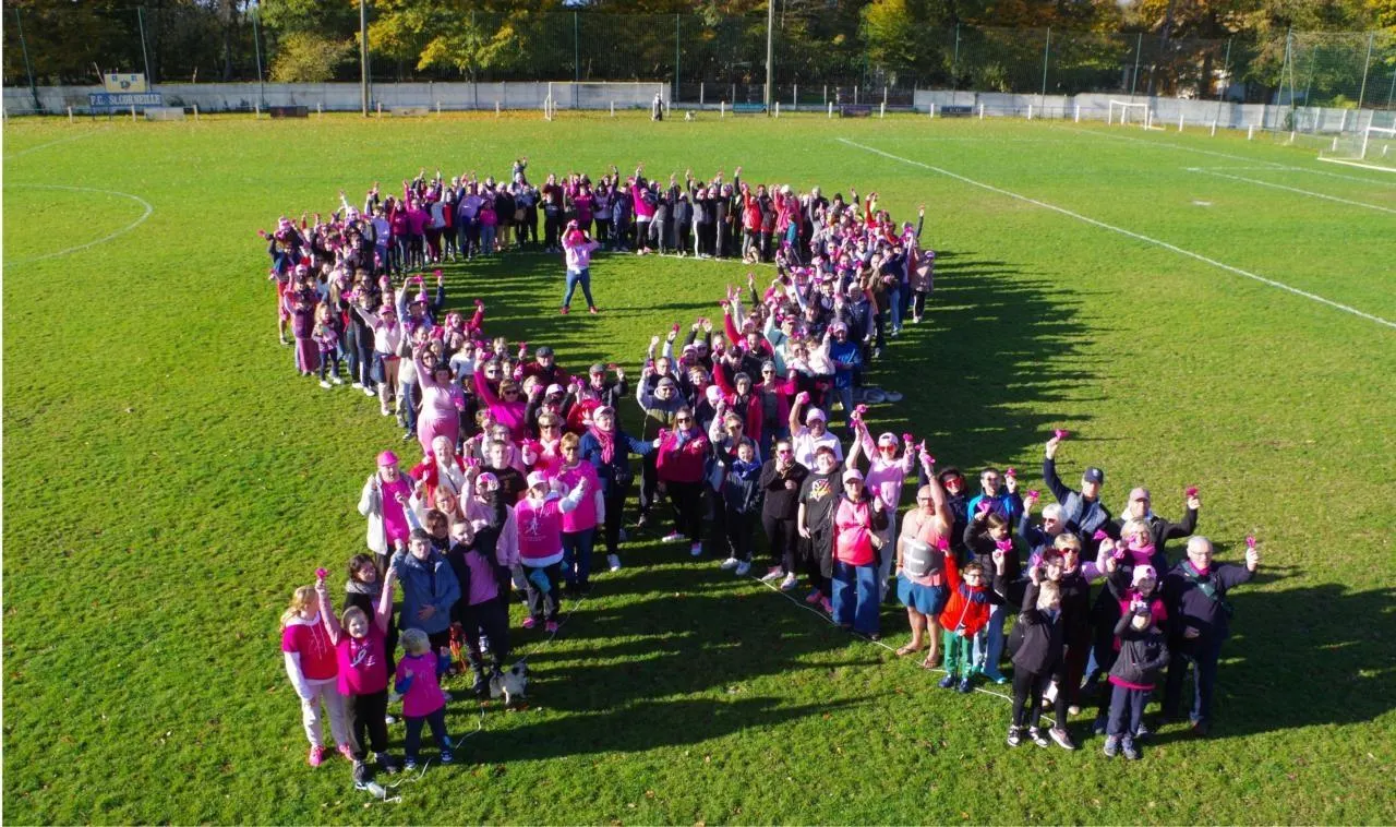 Un joli ruban rose s’est formé sur le stade. © Lucie BRUNEAU