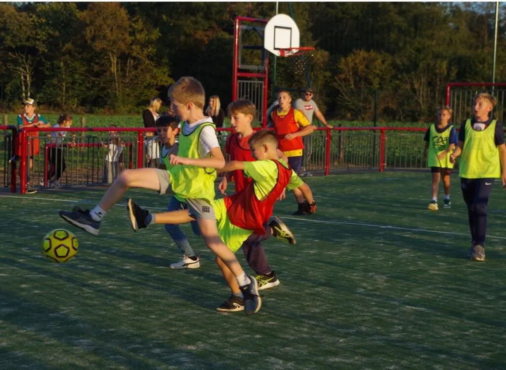 Le FC Saint-Corneille a organisé un petit match avec les jeunes du village pour l’inauguration du city stade. © Le Maine Libre