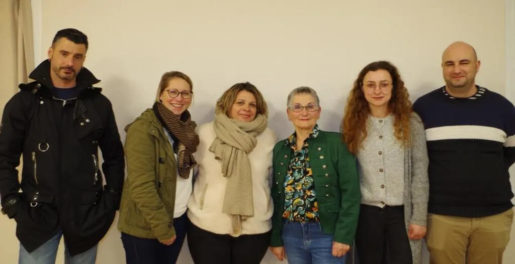 Martine Evrard, la présidente et les cinq nouveaux adhérents. © Le Maine Libre