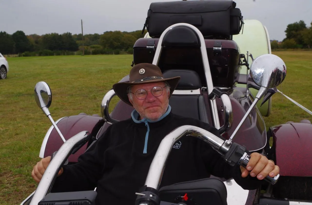 « Pour ma part, j’ai commencé la moto assez tardivement, vers 45 ans. Je me suis orienté vers le trike, c’est-à-dire une moto à trois roues avec un moteur de voiture, car c’est beaucoup plus confortable qu’un deux-roues. On peut en faire des kilomètres. Partir en vacances, par exemple. Sur l’autoroute, il suffit de se caler à 130 et ça ne bouge pas d’un pouce. Il y a une véritable fraternité et une solidarité entre trikers. On l’a d’ailleurs vu aujourd’hui. Les gens n’hésitent pas à discuter et à manger ensemble, même s’ils ne se connaissent pas. »