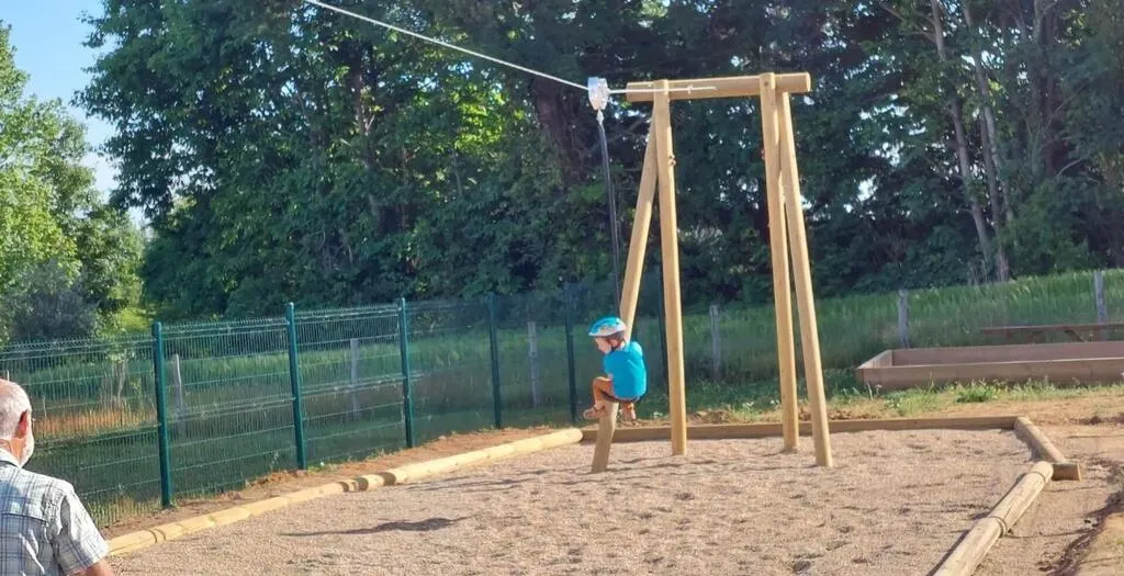 Il s’agit de la très attendue tyrolienne : « Elle rejoint les équipements existants : citystade, piste BMX, pont ouistiti, petite maison, araignée et aire de pétanque. Nous demandons aux parents ou adultes référents de bien veiller aux respects des consignes d’âge pour chaque jeu » conseillent les élus.