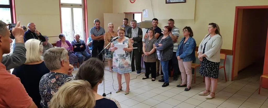 Annick Dutertre, maire de Saint-Georges, entourée de son équipe municipale, s’adresse aux Rosayiens. © Le Maine Libre