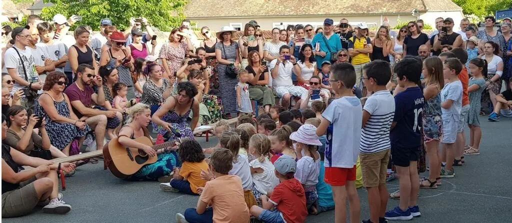 Dans la cour de l’école transformée en scène de spectacle, les classes se succèdent. De la maternelle, petite section jusqu’aux élèves de CM2, les élèves font voyager les spectateurs autour du monde avec des chants, des danses et pour les plus grands, une représentation théâtrale.