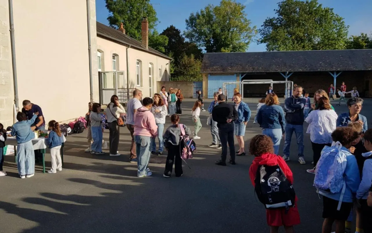 Moment de convivialité dans la cour de l’école Cassini à l’occasion de la rentrée scolaire. © Le Maine Libre