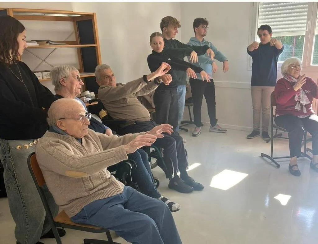 Des élèves ont proposé une activité taï-chi-chuan à des résidentsde l’Ehpad de la Fuie. © Le Maine Libre