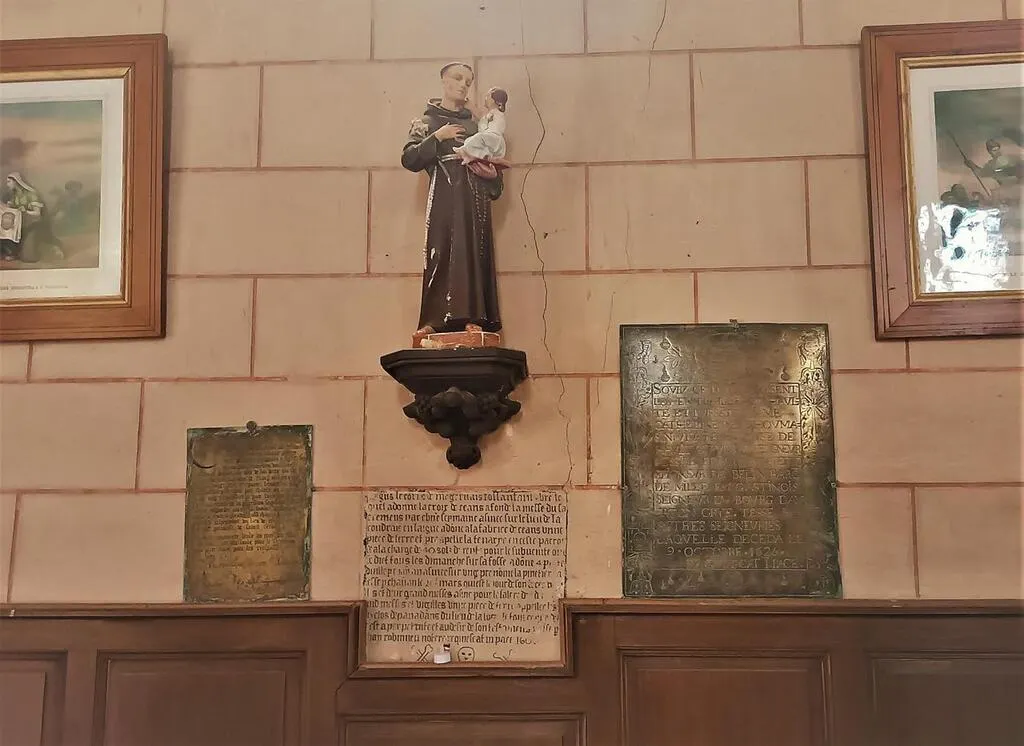 photo  trois plaques funéraires sont sur les murs de la nef, près de saint-antoine de padoue,  ©  ouest-france 1