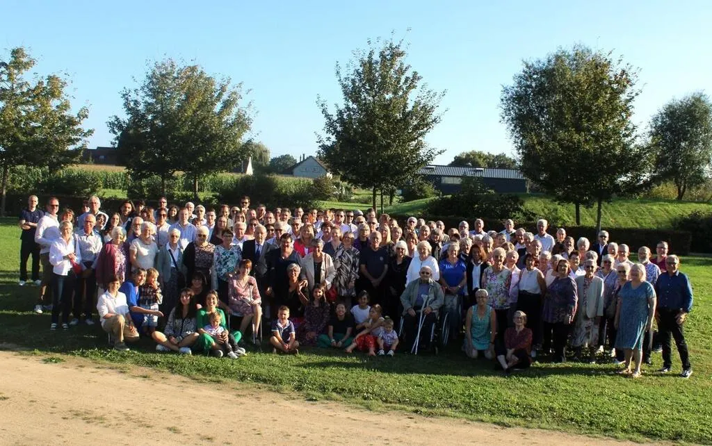 La fête a eu lieu à la Belinoise vers 17 h, samedi 30 septembre 2023. Famille et amis, soit 140 personnes, étaient présents. Plus de cent personnes sont restées au dîner dansant, le soir : ses trois filles, ses huit petits-enfants, ses quinze arrière-petits-enfants, onze conjoints et cousins et 65 neveux et nièces. © Ouest-France
