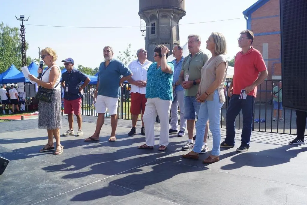 Annick Gosnet, présidente de la MDP, au micro, entourée des différents maires de la Communauté Maine CÅ“ur de Sarthe accueille la foule lors du festival des associations samedi à la fonderie d’Antoigné. © Ouest-France