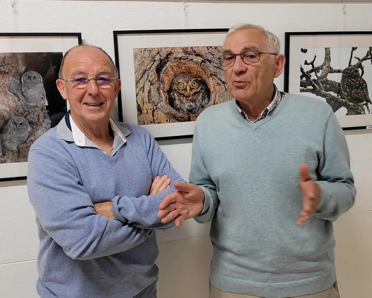 Christian Redou, à gauche, avec Gérard Carreau, heureux de partager leur passion pour la photographie animalière. © École de peinture des Alpes Mancelles