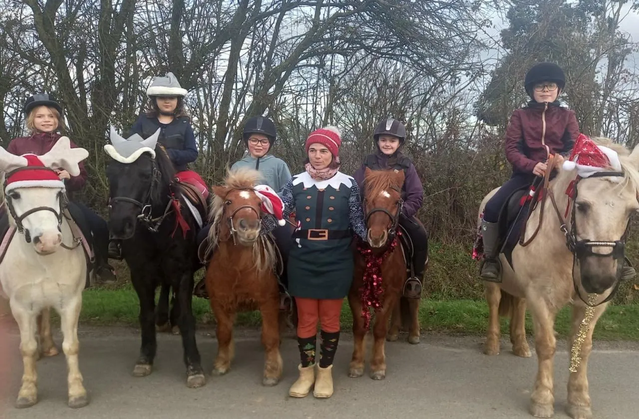 Amélie Dubourg en balade avec ses cavaliers en herbe. © Ouest-France