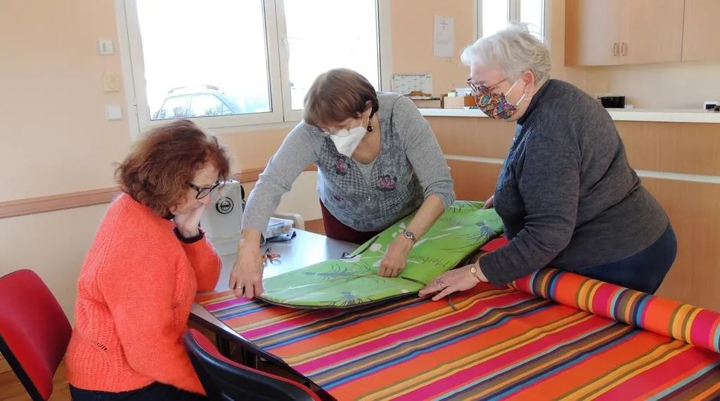 Et le groupe est déjà très motivé. Chacune se lance dans ses projets, encouragée par Martine. Un tricot pour la mi-saison, des petits paniers pour Pâques, une jupe, des sacs pour partir en vadrouille, et même des housses pour donner un coup de jeune au salon de jardin qui va bientôt ressortir !