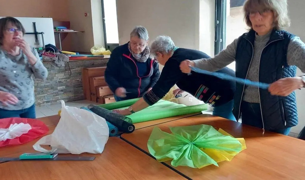 Atelier créatif, jeudi 25 avril, avec les bénévoles du comité des fêtes qui ont passé une partie de l’après-midi à terminer les dernières décorations qui seront disposées dans le village en septembre.