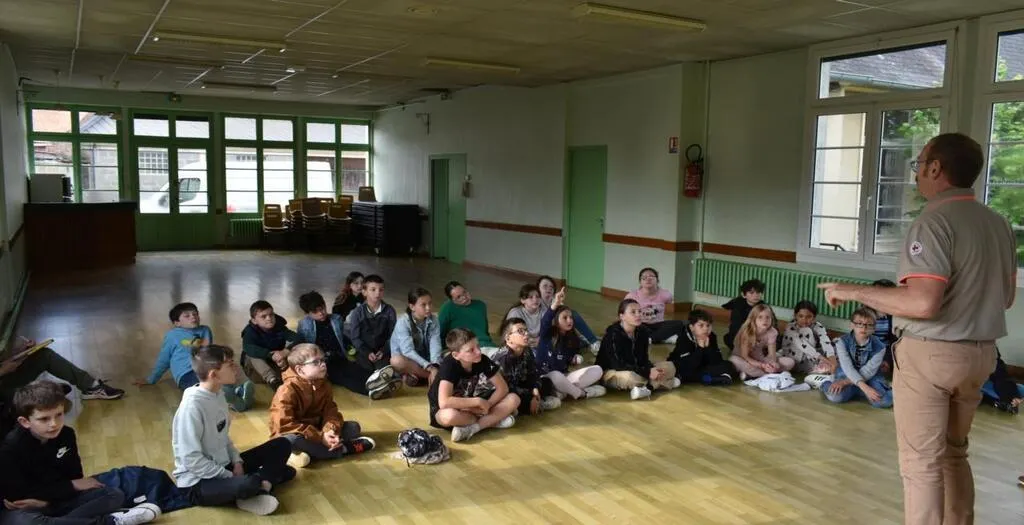 « Chaque année les élèves de CM1 et CM2 sont conviés à cette initiation dont le financement est assuré par la coopérative scolaire » explique l’institutrice. Ils avaient tous en tête la technique du massage cardiaque. Certains même n’hésitent pas à feindre les mouvements. Mais avant cela, ils recevaient une information générale sur l’institution internationale de la Croix Rouge. Ils rappelaient notamment les domaines d’actions de la Croix Rouge : l’urgence et opérations, secourisme, action sociale, formations aux métiers sanitaires et médico-sociaux et action internationale.