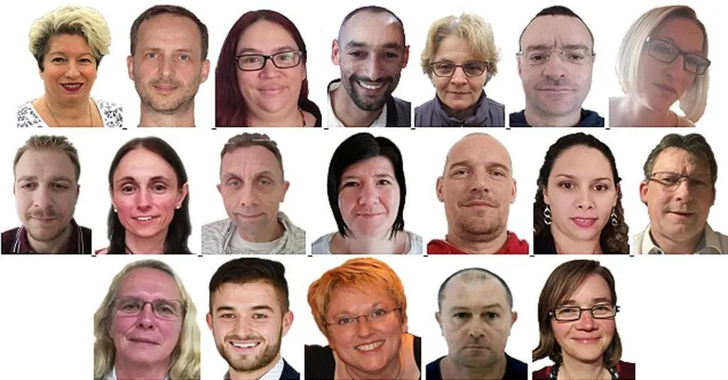 Stéphanie Philippe, 48 ans, assistante administrative ; Nordine Vallas, 46 ansc informaticien (cons. sortant) ; Annick Brunet, 37 ans, intérimaire ; Florian Lerebourg, 30 ans, conducteur de ligne ; Janine Beatrix, 58 ans, agent d’entretien (cons. sortante) ; Sylvain Follenfant, 37 ans, technicien pose ; Élodie Alleton, 31 ans, assistante maternelle ; Frédéric Bruneau, 34 ans, carrossier peintre ; Isabelle Drouin, 39 ans, aide-soignante ; Xavier Papin, 54 ans agent de maîtrise principal ; Dany Cabaret, 45 ans, secrétaire ; Tony Jousse, 38 ans, demandeur d’emploi en reconversion ; Marine Danton, 29 ans, iInfirmière ; Frédéric Fouqueray, 45 ans, électrotechnicien ; Sylvie Caillet, 60 ans, retraitée ; Aldric Philippe, 24 ans, chef d’équipe travaux Publics ; Corinne Pautonnier, 49 ans, technicienne support (cons. sortante) ; Stéphane Hubert, 50 ans, Responsable d’atelier ; Carine Dupuy, 39 ans, comptable.