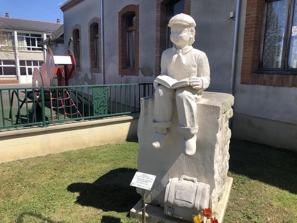 Réalisée lors d’un précédent symposium, la sculpture est désormais installée devant l’école de Saint-Michel-de-Chavaignes. © Ouest-France