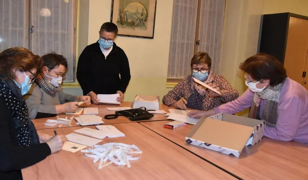 L’équipe du CCAS lors de la mise sous enveloppe. © Le Maine libre