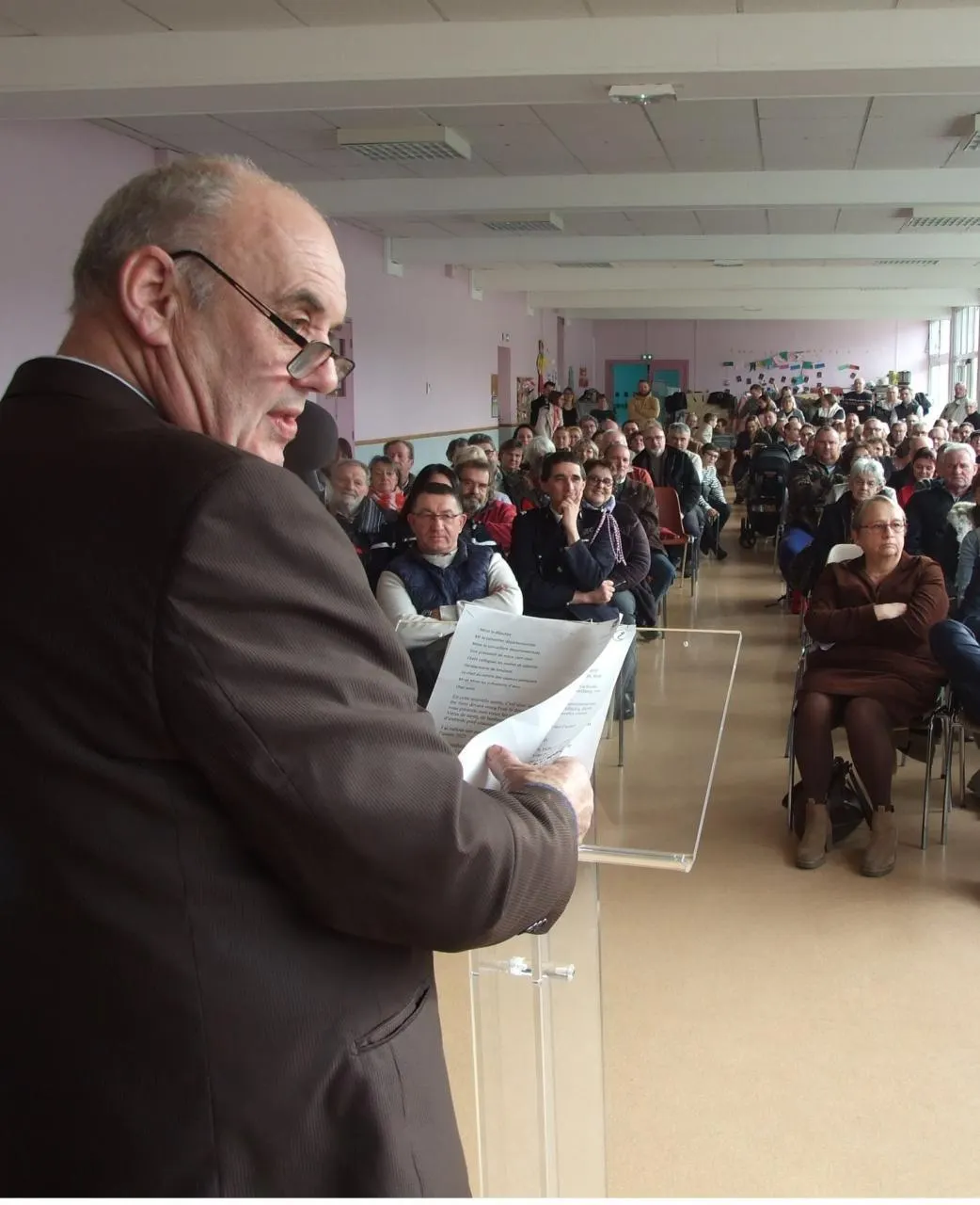 C’est une salle comble qui est venue dire adieu à son maire, Michel Froger. © Ouest-France