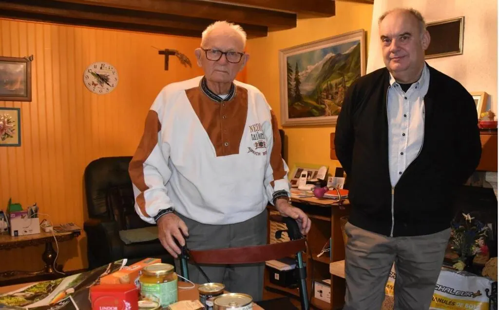 Pierre Marlin et Michel Froger ont livré les colis gourmands. © Le Maine Libre
