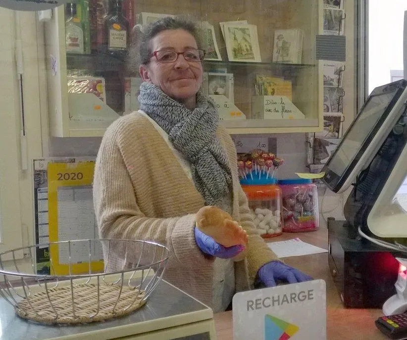 Anita s’organise pour continuer à servir les clients qui rentrent un par un dans l’épicerie ouverte tous les matins sauf le mercredi. © Le Maine Libre