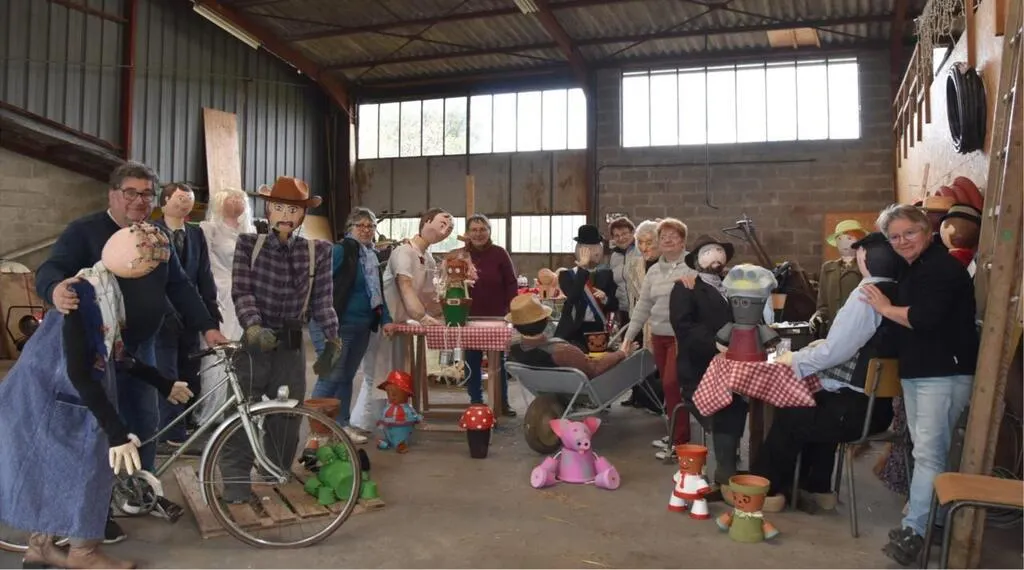 Une trentaine de bénévoles ont pris l’habitude de se retrouver à l’atelier communal pour imaginer, créer, proposer et échanger des idées, etc., dans une très bonne ambiance : Nous avons réalisé des mannequins pour représenter les métiers qui existaient encore il y a quelques décennies dans le village, mais aussi le maire, les mariés, etc., et autres personnages mais aussi des décos avec des pots en terre à poser sur des appuis de fenêtres, etc. Si nous sommes installés dans l’atelier communal, d’autres bénévoles, œuvrent à leur domicile.