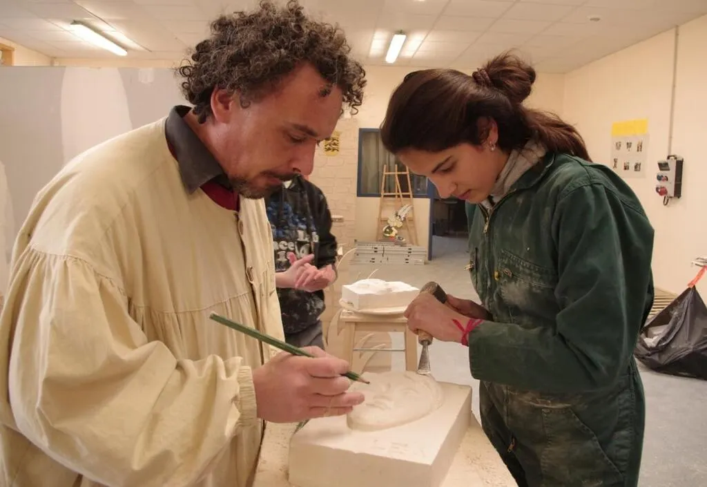L’occasion pour ces jeunes de s’initier à la sculpture aux côtés d’Emmanuel Seilier juste avant le confinement. © Le Maine Libre