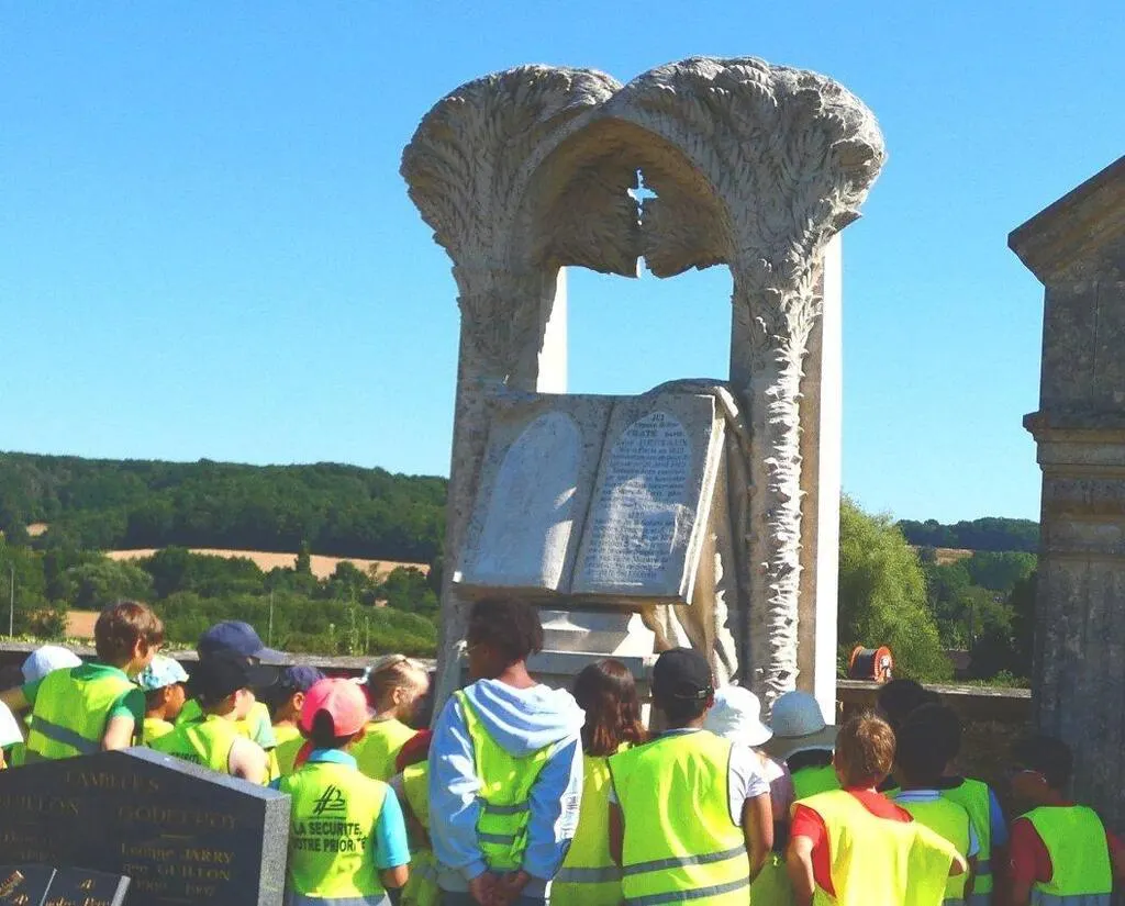 Répartis par groupes, les élèves des écoles se sont rendus auprès de la stèle où repose la sculptrice. © Philippe Aumand