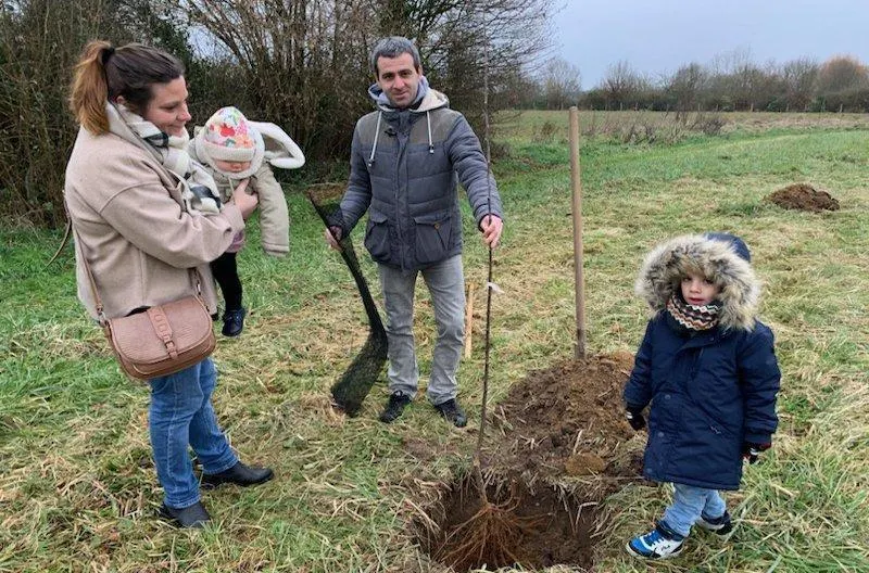 La famille d’Éloïse, née le 1er janvier 2024, a planté un pommier. © Le Maine Libre