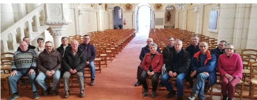 Les élus, bénévoles et personnels ayant contribué à l’installation de 300 chaises dans l’église © Le Maine libre