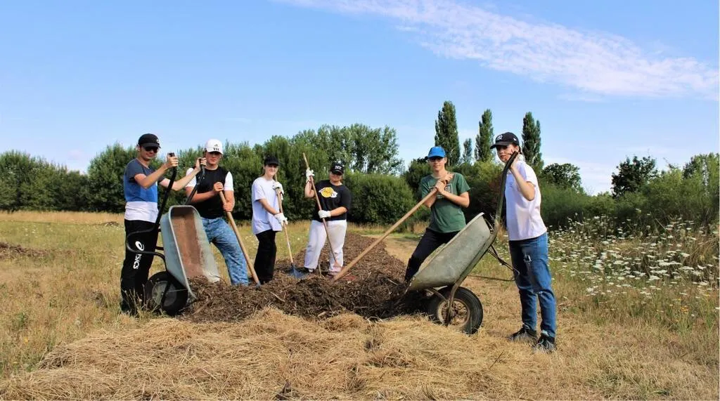 Pour accueillir cette future haie champêtre de 180 m de long, ils ont étalé, sur un lit de vieux foin, 40 m3 de broyat issu de la plateforme communautaire de compostage d’Écommoy. À l’automne, elle sera plantée de noisetiers, cormes et de quelques chênes et châtaigniers délivrés par le département. La communauté de communes finançant le chantier et assurant l’encadrement des jeunes.
