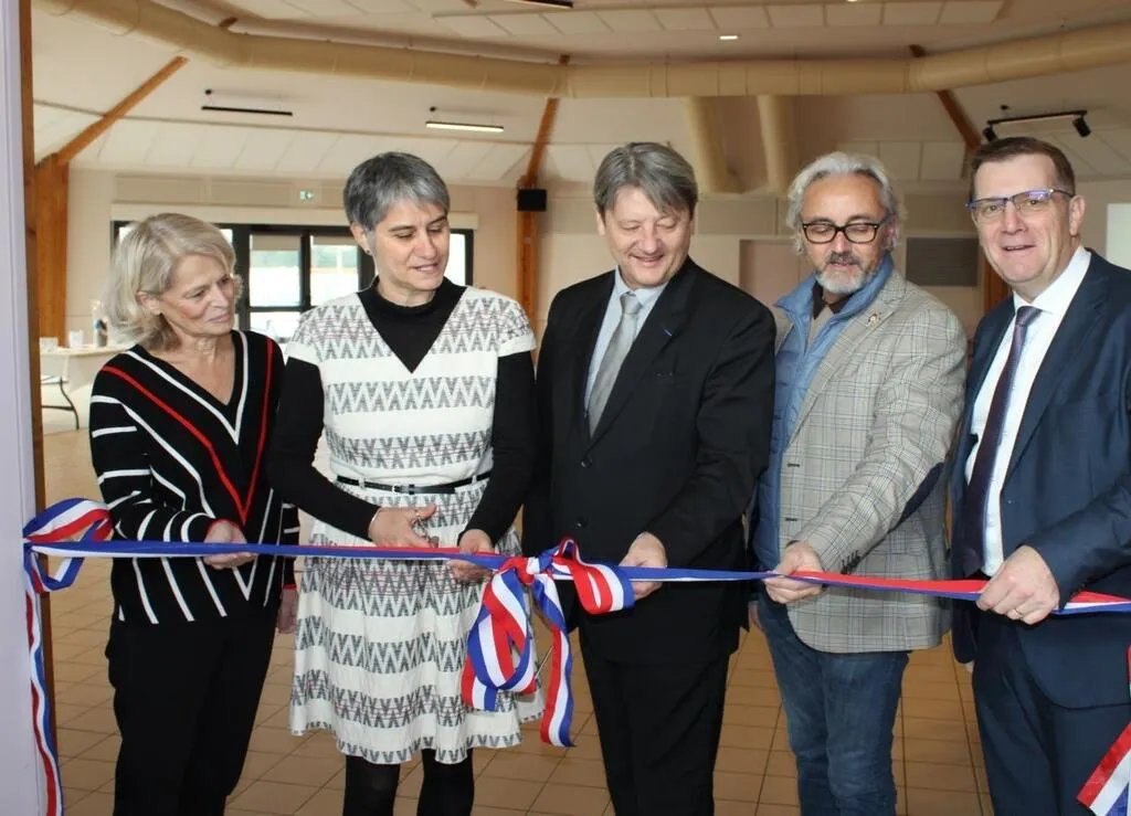 Anne-Gaëlle Chabagno, élue régionale, Florence Février, maire, Éric Zabouraeff, sous-préfet, le député Éric Martineau et le conseiller départemental, Samuel Chevalier ont inauguré une salle des fêtes rénovée. © Ouest-France