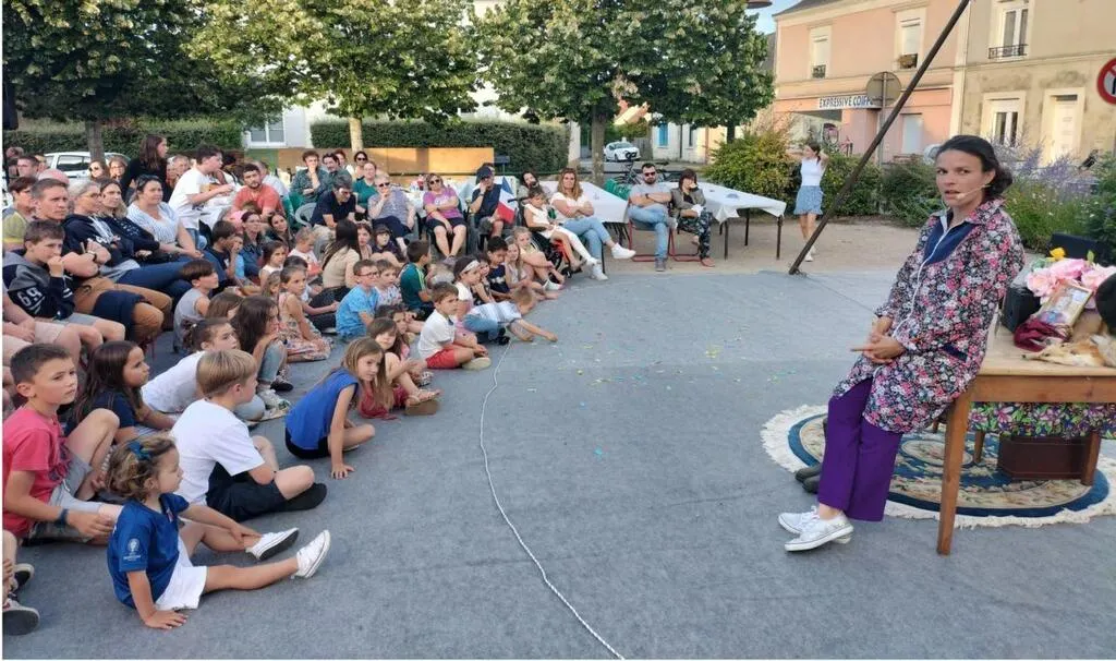 Emma Verbeke (à droite) était de retour à Saint-Ouen-en-Belin avec sa compagnie La Volière de velours. © Le Maine Libre