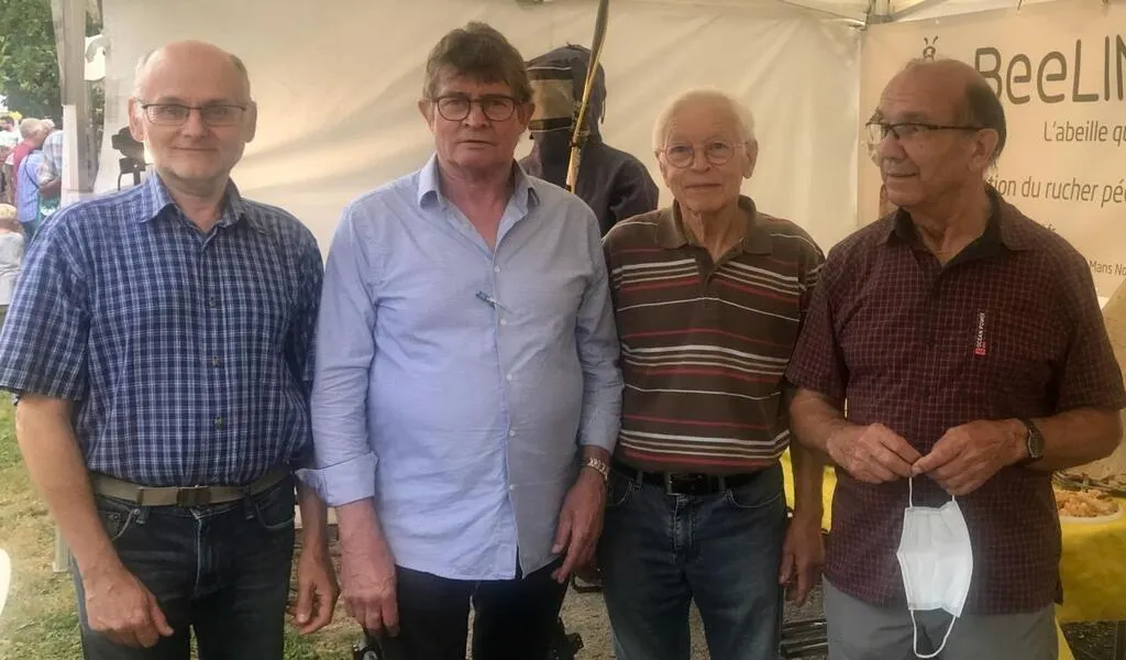 Patrice Hérisson, Alain Floquart, Joel Girard et Guy Donné, les fondateurs de Beelinked lors de la fête au village. © Le Maine Libre