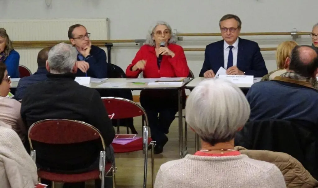 Annick Egon, la présidente de l’Herberie, entouré d’Eric Brionne, l’expert-comptable (à gauche) et du maire, Christophe Rouillon, lors de l’assemblée générale. © Ouest-France