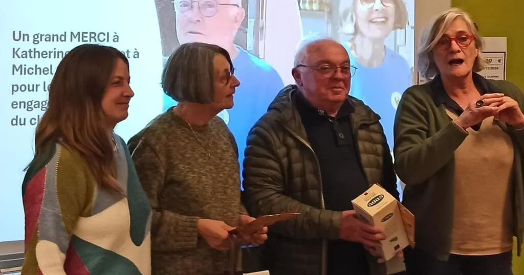 Catherine Tencé (à droite) a remercié, Michel Chaucesse, et Katherine Marzys, pour leurs années de bénévolat, avec Clémence Leroux. © Ouest-France