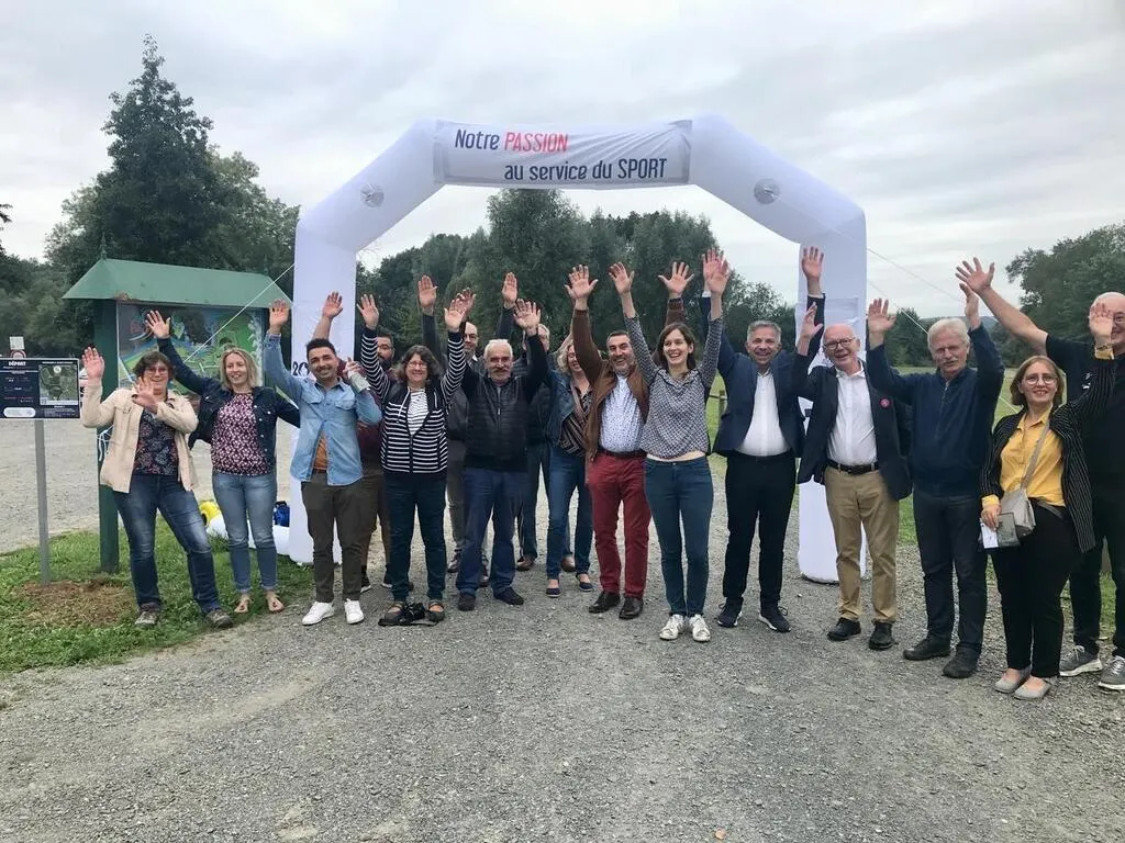 Élus de la communauté et membres de la commission vie associative et sportive donnent le coup d’envoi de « Terre de Jeux 2024 » © Le Maine Libre