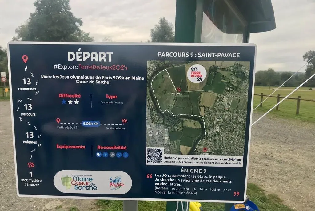 Au départ de chacun de treize circuits pédestres, une énigme à déchiffrer figure sur le panneau. Une fois les treize circuits effectués, et chaque énigme résolue, un mot mystère sera à découvrir. Ce jeu est gratuit et prendra fin en 2024 à la fin des Jeux olympiques. Un tirage au sort permettra de gagner des lots. Les participants sont invités à partager les exploits sportifs sur les réseaux sociaux avec le mot-dièse #MaineCoeurdeSports2024.