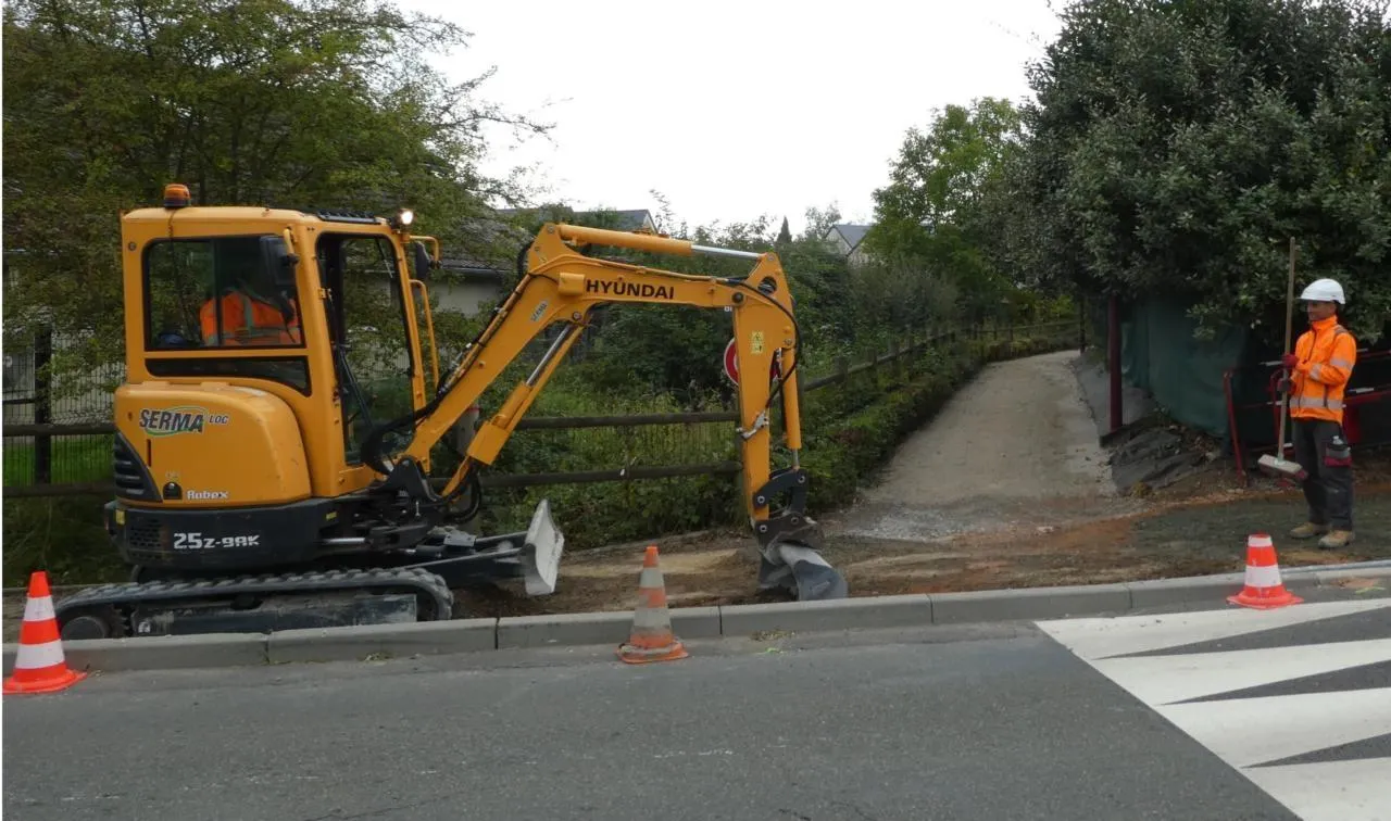 L’entreprise Eiffage réalise les travaux, chemin de la Houssaye et élargit l’allée de la Romerie. Le tapis d’enrobé sur le chemin et le sable stabilisé de l’allée, finiront la voie douce pour les vacances de la Toussaint.
