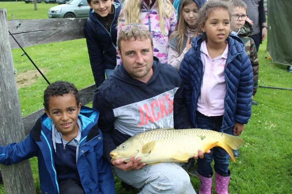 Àgée de six ans, le petite fille a dû faire appel à son papa pour sortir de l’eau une carpe de 6,5 kg, le week-end dernier lors de la journée de pêche familiale.
