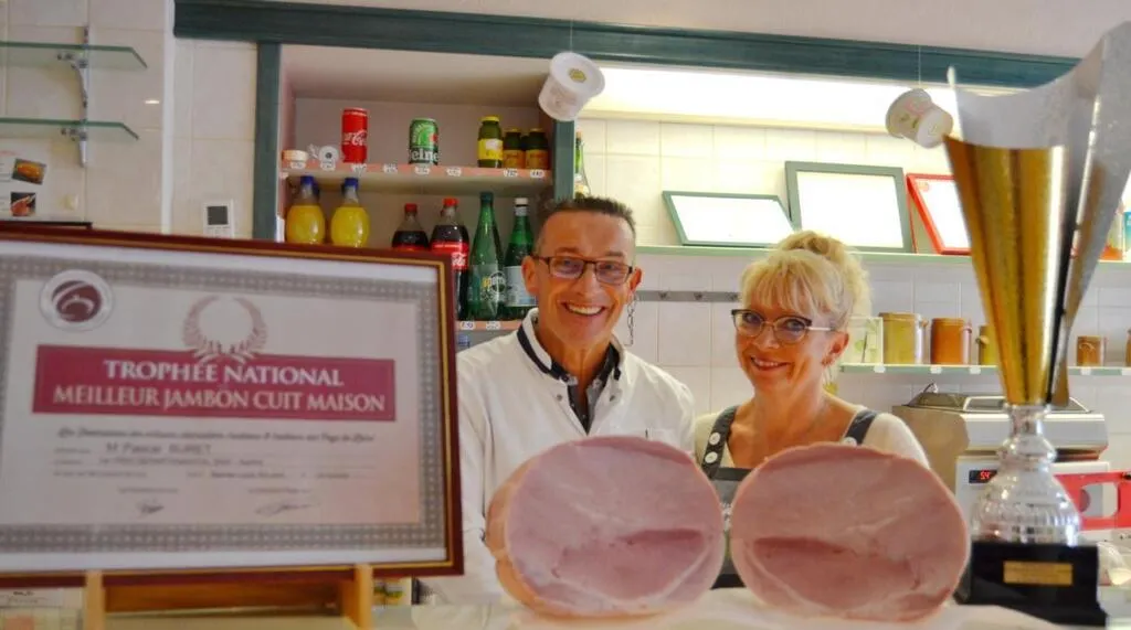 Lundi, Isabelle et Pascal Buret, charcutiers, ont vécu un nouveau jour de gloire. Ils ont en effet reçu le Trophée national du meilleur jambon cuit maison, organisé par les Fédérations des artisans charcutiers et traiteurs des Pays-de-Loire à La Roche-sur-Yon (Vendée).