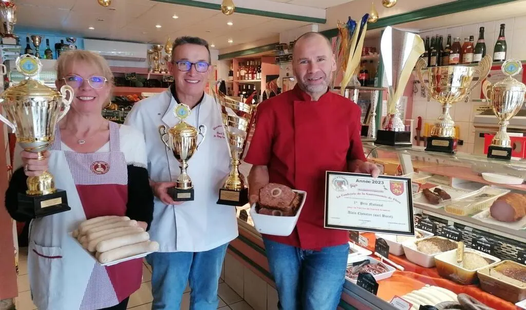 Isabelle et Pascal Buret ont reçu le 3e prix départemental pour leur jambon blanc. Quant à leur chef charcutier, Alain Chevalier, il a reçu le titre de champion de France pour sa terrine de canard pommes et figues, présente dans les menus de fêtes proposés par la boucherie-charcuterie Buret.