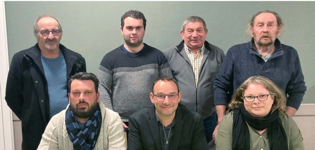 Le nouveau président de l’association (premier rang, au centre) entouré du bureau et de Philippe Chartier, le maire. © Le Maine Libre