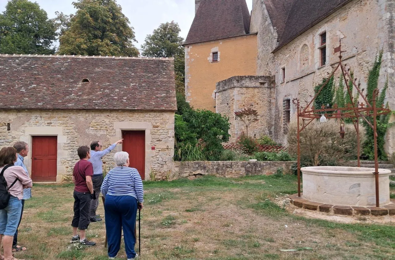 Mardi 19 août, un groupe de quatre personnes, touristes, amoureux de vieilles pierres, venus du Maine-et-Loire et du Cher, ont été accueillis par Kathrin et Philippe Favre, propriétaires des lieux tombés sous le charme de cette ancienne demeure seigneuriale en 1983, pour lui restituer sa grandeur du début du XVIe siècle. Une passion qui dure depuis plus d’une quarantaine d’années, avec la volonté de préservation de tous les témoignages retrouvés pour redonner vie à ce coin de Moyen Âge situé aux confins de trois puissances fort belliqueuses : le duché de Normandie, le royaume de France et les comtés du Maine et d’Anjou. Des guerres de religion y laissent de nombreuses traces.