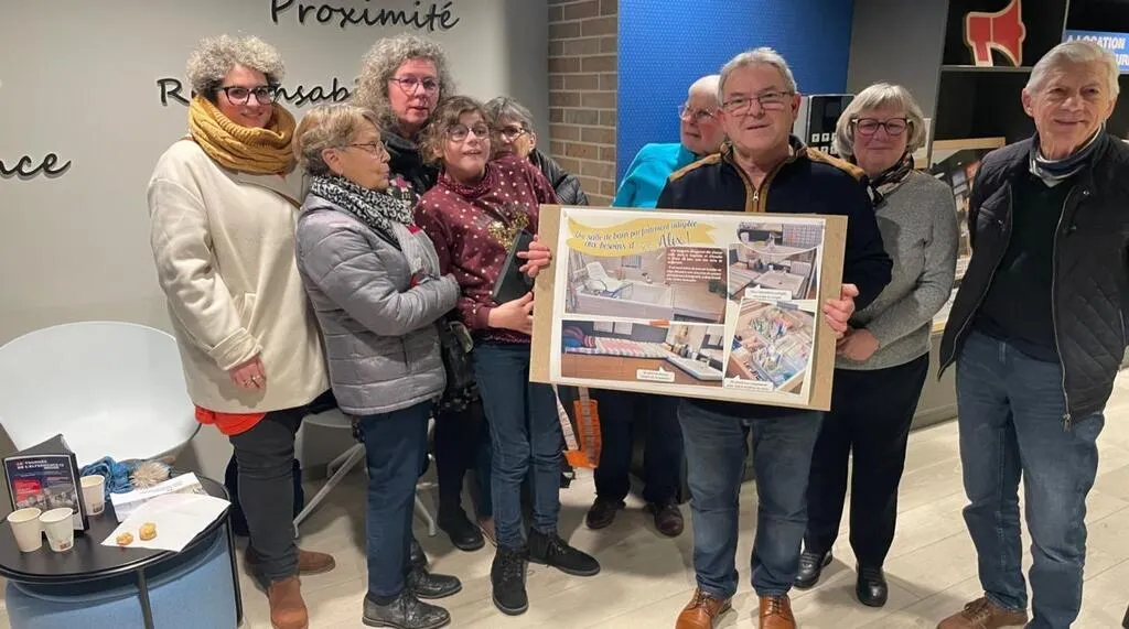 Alain Lemée a fait une petite présentation des travaux réalisés. À sa droite, Alix et derrière Alix, Christine, sa maman. À l’extrême gauche de la photo, Anne Thomas, l’ergothérapeute. © Ouest-France