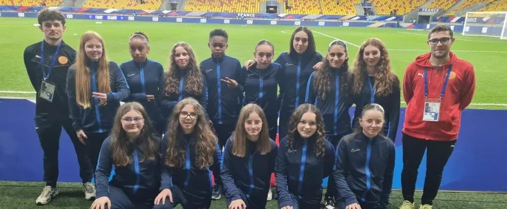 Mardi 25 février, les jeunes footballeuses U15 F du club de Saint Saturnin-La Milesse ont eu l’opportunité de participer au protocole d’avant-match de l’équipe de France féminine qui affrontait l’Islande au stade Marie-Marvingt. Cette expérience unique a permis aux 13 joueuses, encadrées par Matéo et Martin, de vivre une soirée inoubliable.