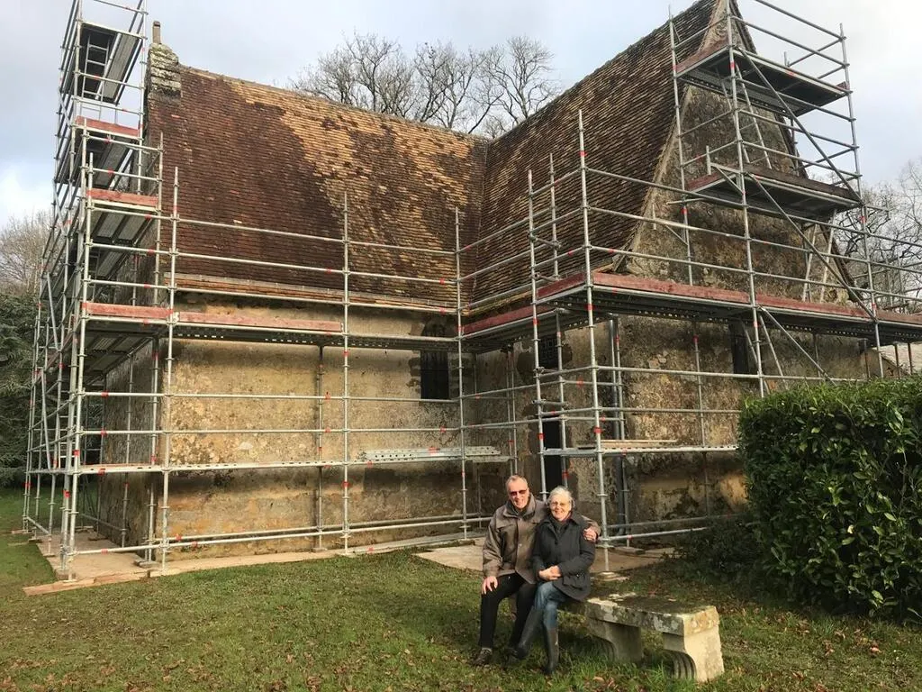 La chapelle des Etrichets entourée d’échafaudages pendant au moins 8 mois, Roselyne et Eric Bigourdan sont bien conscients que c’est le prix à payer pour que celle-ci retrouve tout son éclat. © Ouest-France
