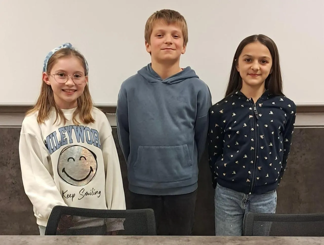 Le nouveau maire junior et ses deux adjointes. © Ouest-France