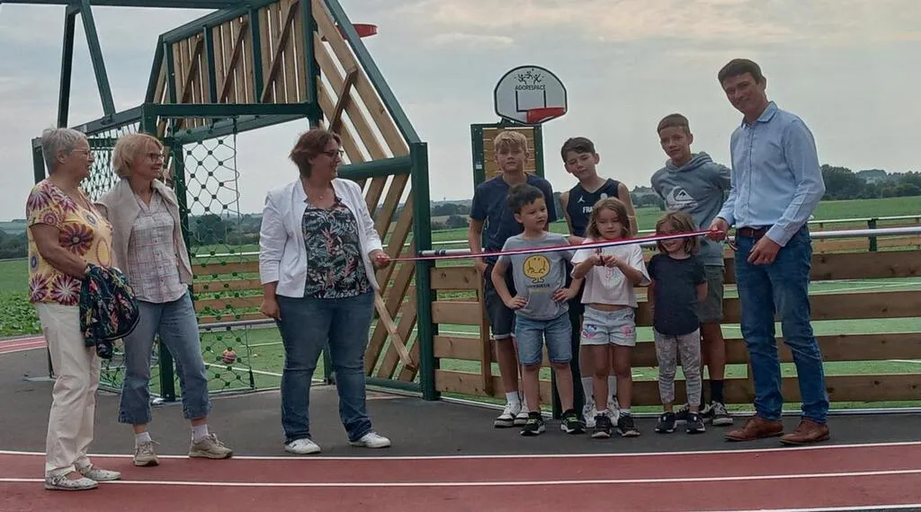 Loïc Chaumont et Anne-Sophie Bonifait respectivement 1er et 2e adjoints, avaient invité les enfants de la commune à couper le ruban inaugural. Une partie de baby-foot grandeur nature avec des habitants et un vin d’honneur clôturaient la cérémonie.